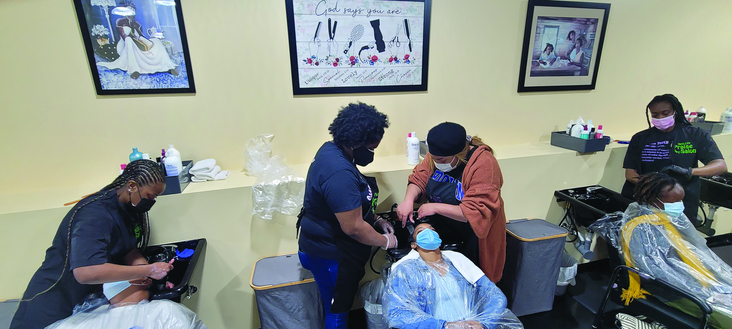 Total Praise Salon serves women, experiencing financial hardships, through cosmetology services. These services are provided in an effort to promote personal and professional growth. Total Praise volunteers share beauty tips and words of encouragement to help improve self-esteem.